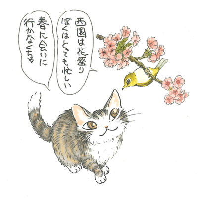 アトリエの前の桜にもメジロが蜜を求めてやってくる。