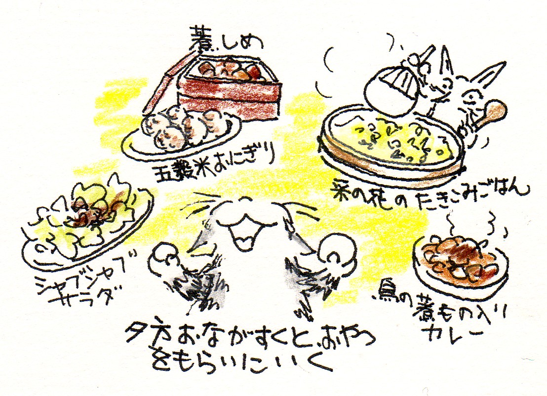 夜はたらの芽パーティを予定していたので、早めに帰らなくてはならず、またもやセンダックの原画が見られなかった。会期中にもう一度行くことにしましょう。まだ寒くてたらの芽は出ていなかったけど、マタギの熊ちゃんが熊や鹿の肉を持って来てくれたので、すばらしい晩餐になりました。